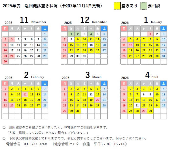 巡回健診空き状況