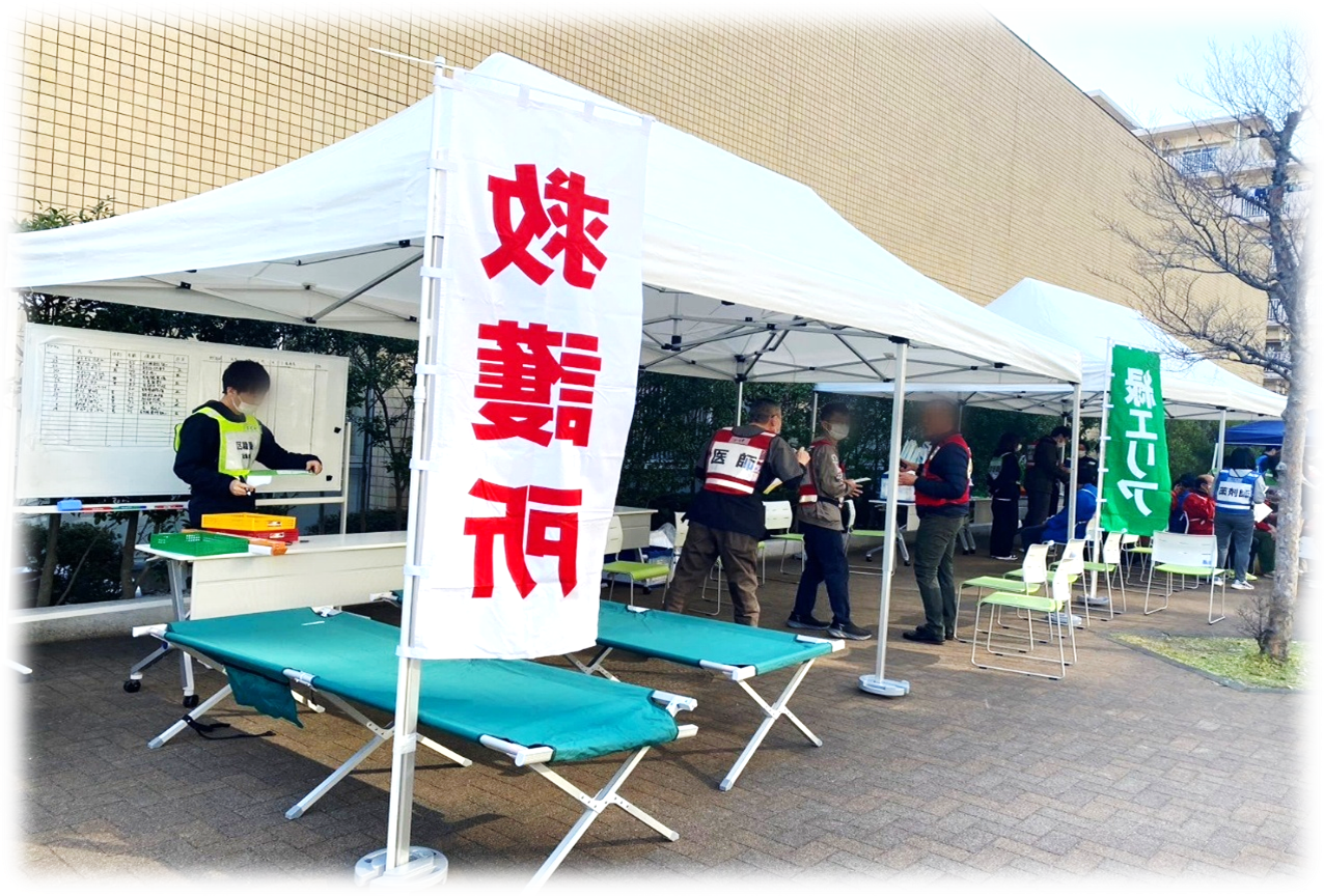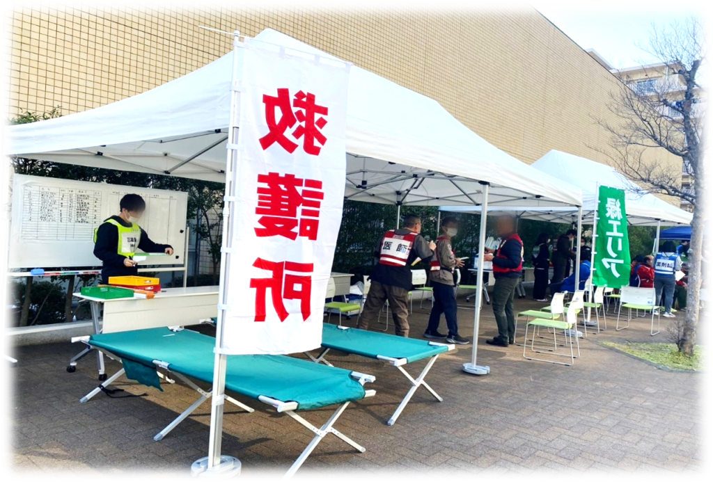 蒲田医師会、近隣の訪問看護ステーション、薬剤師会、ボランティア、大田区、地域の方々と共に訓練を行いました!